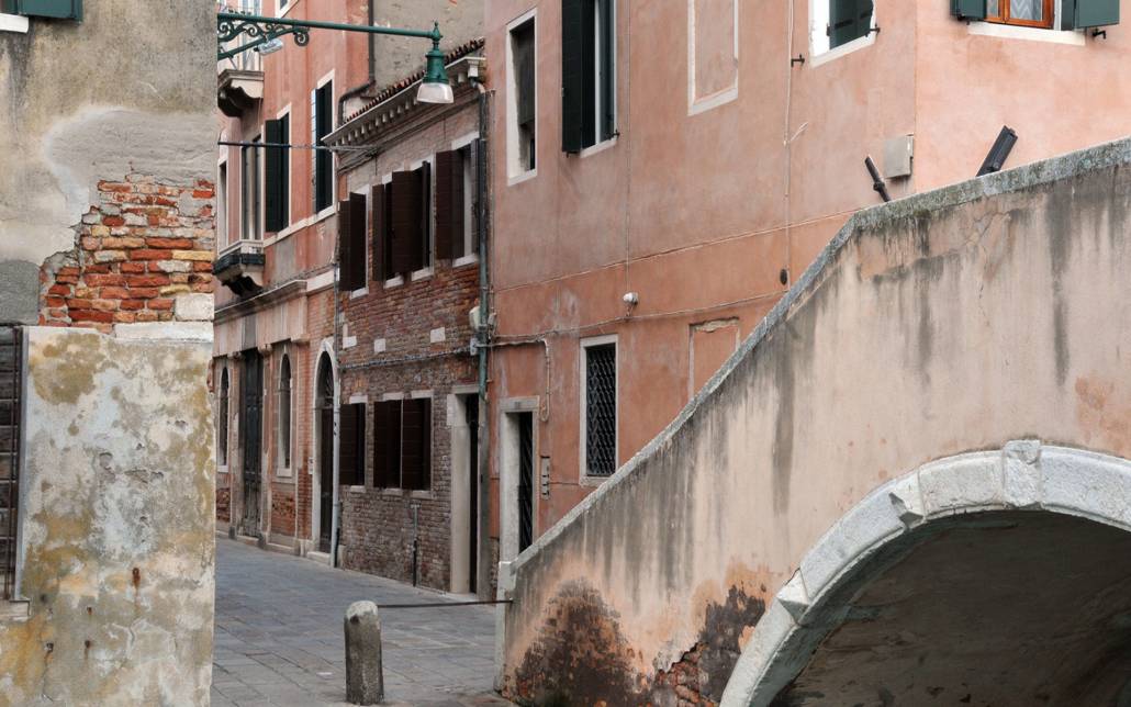All’uscita dalla Ferrovia di Santa Lucia dirigersi verso sinistra e attraversare il “Ponte degli Scalzi”. Percorrere “Calle Lunga” e svoltare a sinistra per attraversare il “Ponte de la Bergama”.